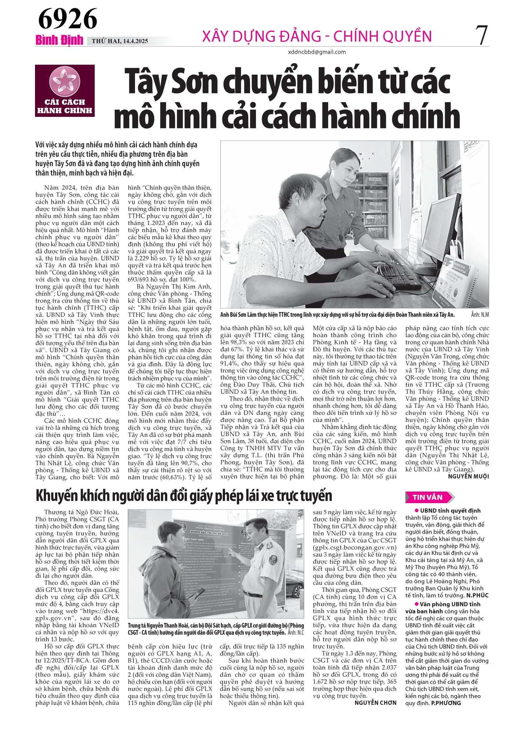 Tây Sơn chuyển biến từ các mô hình cải cách hành chính
