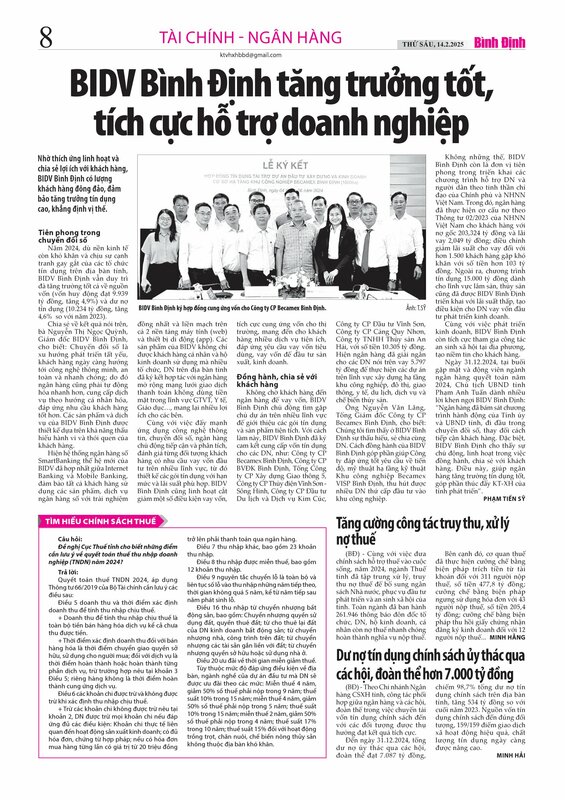 Part of BIDV Bình Định tăng trưởng tốt, tích cực hỗ trợ doanh nghiệp